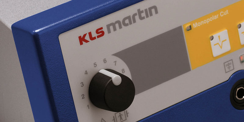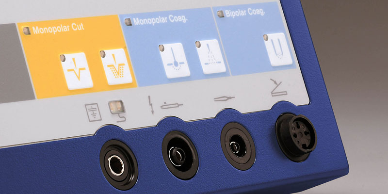 - łatwość kontroli dzięki łatwym do zapamiętania symboli funkcjonalnych. Moc jest ustawiana za pomocą pokrętła, wszystkie połączenia dla aktywnych elektrod oraz dla włącznika nożnego umieszczone są na przednim panelu
