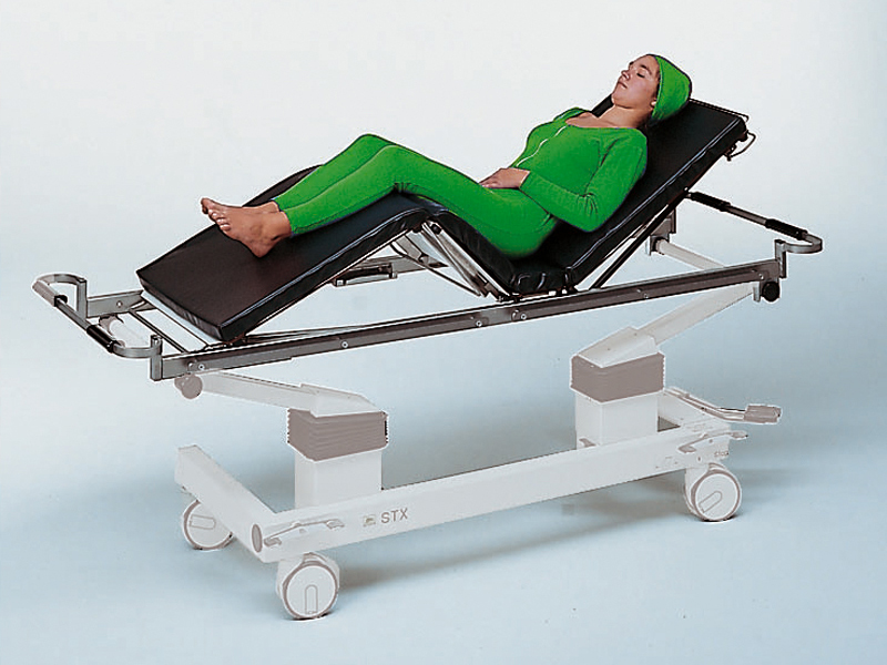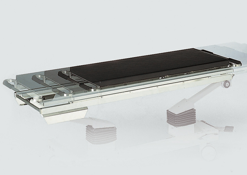 jednoczęściowy blat, bez materaca, szerokość 800 mm. Wzdłużne pręty aluminiowe ze zintegrowaną szyną boczną do mocowania akcesoriów, uchwyt do prowadzenia wózka po obu stronach (kształt zaprojektowany w taki sposób, aby chronił przed kolizją), zintegrowana szyna na akcesoria, blat radio przezierny z szynami na poprzecznie umieszczane kasety rentgenowskie.Materac STX 280.3120.0