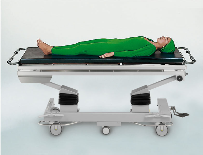 Wózek do transportowania pacjenta STX 280 Wysokość regulowana bezstopniowo przy pomocy pedału.